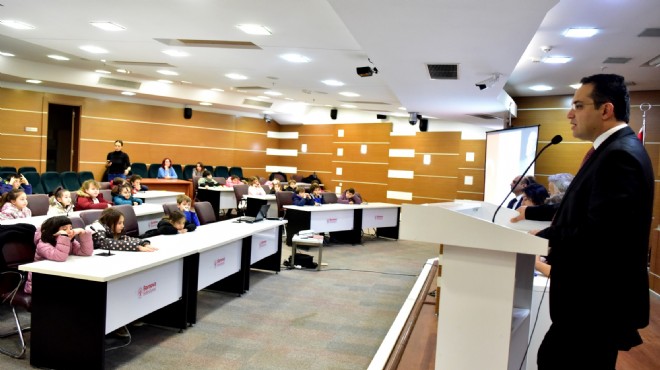 Minik öğrenciler, Bornova Belediyesi Meclis Salonu’ndaki Başkan Olgun Atila ile biraraya geldi. Tek tek söz alıp, sorular soran öğrenciler, belediyelerin işleyişi ve görevleri hakkında bilgiler aldı.