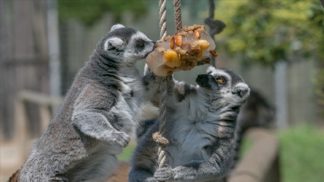 Hava sıcaklıklarının yaz aylarında zaman zaman yüksek seyrettiği İzmir'deki Doğal Yaşam Parkı'nda farklı türdeki hayvanlar, kendilerine özel olarak hazırlanan "yaz menüsü" ile serinliyor.