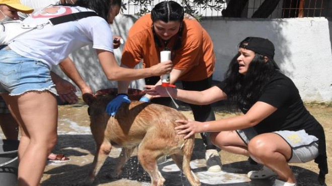 Kemalpaşa ilçesinde bulunan barınakta toplanan HİPDER üyeleri ve gönüllüleri, hasta, engelli ve sahiplendirilmeyi bekleyen 80 köpek için etkinlik düzenledi. Etkinlikte 20 kişi, köpekleri şampuanlarla yıkayarak, tüylerini taradı. Sıcak yaz günlerinde bunalan köpekler, serinletilirken, gönüllüler de hayvan dostlarıyla birlikte keyifli vakit geçirdi.