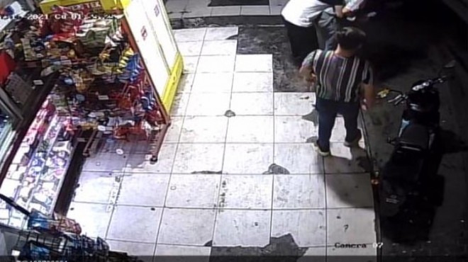 Konak ilçesi Anafartalar Caddesi’nde dün bir büfeye gelen kimliği öğrenilemeyen erkek, su satın aldı. Suyu içen vatandaşın öksürmesinden şüphelenen tekel bayi çalışanı Hasan S., hemen müdahale ederek ona heimlich manevrası yaptı. Boğazına kaçan ekmekten kurtulan vatandaş, rahat nefes aldı. O anlar, iş yeri kamerasına yansıdı. (DHA)