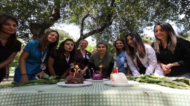 İzmir'de yeni tip koronavirüs salgını nedeniyle 2 yıldır Hemşireler Günü'ne görev yaptıkları hastanelerin yoğun bakım servisinde giren hemşireler, vaka sayılarının azalmasıyla günlerini hastane bahçesinde maskesiz kutlayarak normale dönüş mesajı verdi.