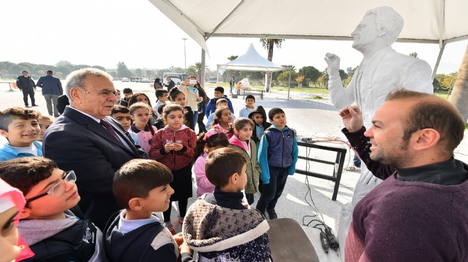 İzmir Büyükşehir Belediye Başkanı Aziz Kocaoğlu, Uluslararası Heykel Çalıştayı için İnciraltı'nda kurulan atölyeleri ziyaret ederek usta heykeltraşlarla bir araya geldi. Bu yıl “Şehir ve Hemşehri” temasıyla gerçekleştirilen çalıştay için İzmir'e gelen sanatçılarla tek tek sohbet eden Başkan Kocaoğlu, yapılan eserlerle ilgili bilgi aldı. Başkan'ın sürpriz ziyareti sırasında alan gelen Kemal Atatürk Ortaokulu 5. sınıf öğrencileri de bu buluşmaya ayrı bir renk kattı.
