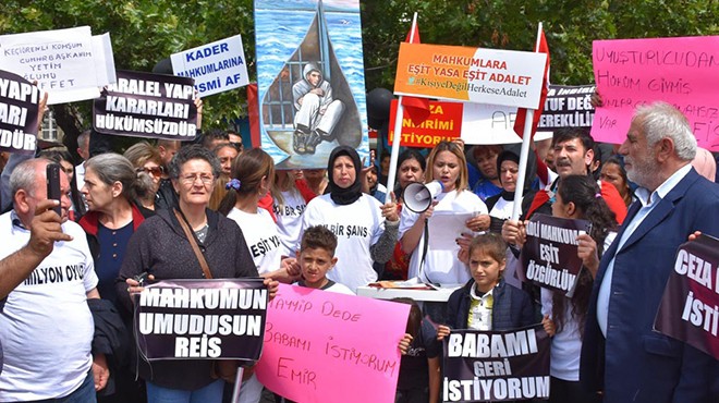 Konak Meydanı'nda bir araya gelen, çeşitli suçlardan tutuklu ve hükümlü bulunanların yakınları, af çıkarılması için eylem yaptı. 'Kader mahkumlarına af', 'Af yoksa oy da yok' sloganları atan grup, yakınlarının hakimler nedeniyle mağdur olduğunu öne sürdü. Grup adına açıklama yapan Seyhan Başar, şunları söyledi: