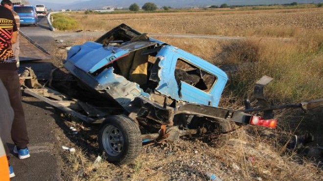 Kaza, gündüz saatlerinde Bergama-Kınık karayolunun 5'inci kilometresinde meydana geldi. Bergama'dan Kınık yönüne giden 40 yaşındaki İlhan Levent yönetimindeki 10 TEJ 44 plakalı hafif ticari araç, aynı yöne giden Zeki Yavuzgören yönetimindeki plakasız kamyonete arkadan çarptı. Kazada, şarampole uçup, hurda yığınına dönen kamyonetin sürücüsü Yavuzgören ile Mehmet Emin Günışık, hafif yaralandı. Yaralılar, ambulanslarla Dr. Faruk İlker Bergama Devlet Hastanesi'ne kaldırılarak tedaviye alındı.