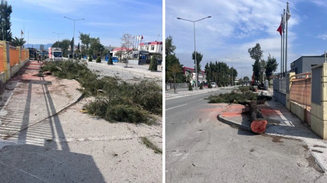 GERÇEKİZMİR - İzmir Atatürk Organize Sanayi Bölgesi’nde ağaçların kesildiği görüntüler sosyal medya hesaplarından paylaşıldı.