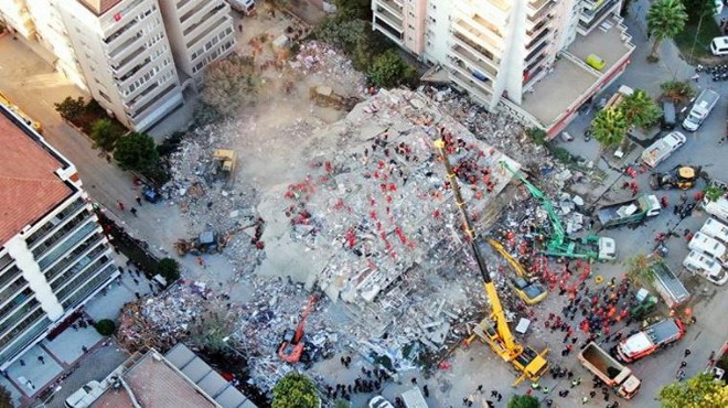 İzmir Tabip Odası Başkanı Dr. Lütfi Çamlı konuşmasında, şu ifadeleri kullandı: “Ülkemiz, planlama, kentleşme, yapılaşma ve denetim konularında ranta dayalı politikalar ve bilim ve mühendisliğe aykırı uygulamalar nedeniyle, başka topraklarda yaşandığında ‘doğa olayı’ sınırları içinde kalacak durumların ağır kayıplar yaşattığı bir ‘afet ülkesi’ne dönüşmüştür. Deprem sonrası tsunami meydana gelmiş ve ciddi maddi hasarlar oluşmuştur. Sığacık’ta taşkın nedeniyle bir kişi yaşamını yitirmiştir. Bayraklı’da 19 bina kısmen ya da tamamen yıkılmıştır, 124 ağır hasarlı 119 orta hasarlı 730 hafif hasarlı bina vardır. Bayraklı, çoğu bina yaşı 25-30 yılın üzerinde olan yüksek katlı apartmanlardan oluşan bir kentsel yerleşim alanıdır. Bölgenin iş merkezlerine, hastanelere ve İzmir Adliyesi’ne yakın olması nedeniyle, genellikle çalışan orta yaş nüfus ikamet etmektedir”