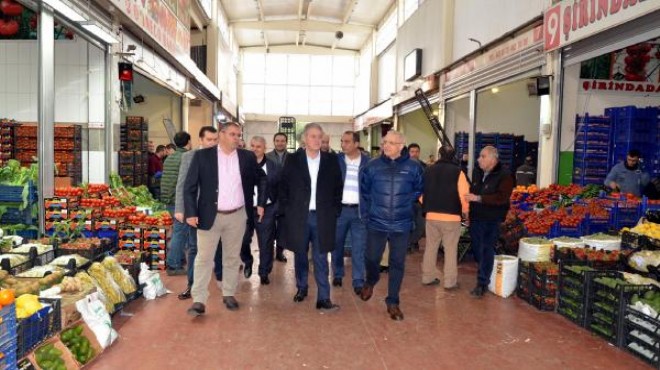 İTO başkan adayı Mahmut Özgener, Buca Kaynaklar'da bulunan İzmir Meyve ve Sebze Hali'ni ziyaret etti. İzmir Sebze ve Meyve Komisyoncuları Derneği (İZKOMDER) Başkanı Orhan Doğan ile yönetim kurulu üyeleri tarafından karşılanan Özgener, hal esnafını da gezerek sorunları hakkında bilgi aldı. Hal esnafının en önemli sorununun ulaşım ve haksız rekabet konularında olduğunu kaydeden Özgener, "Tıpkı Otokent esnafına verdiğimiz müjde gibi, Hal esnafının da yolunu yaklaşık 5 kilometre kısaltacak olan otoyol bağlantısı için Ankara'da yetkililerle görüşeceğim. Bunun sözünü burada sizlere veriyorum" dedi.