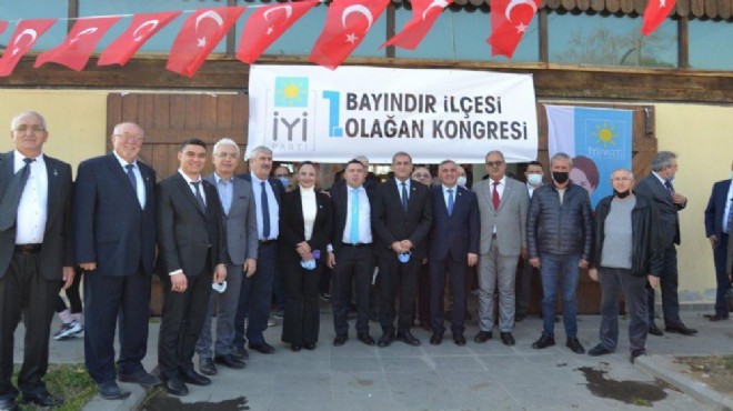İzmir’de İYİ Parti’nin teşkilatlanmasını son tamamladığı ilçe olan Bayındır’da kongre heyecanı yaşandı. Bayındır Belediye Düğün Salonu’nda gerçekleşen İYİ Parti Bayındır 1. Olağan İlçe Kongresi’nde tek aday olan mevcut İlçe Başkanı Necati Solmaz yeniden başkan oldu. Divan Başkanlığını İYİ Parti İzmir Teşkilat Başkanı Murat Çakar’ın yaptığı kongre pandemi kuralları çerçevesinde gerçekleşti. Kongreye; İYİ Parti İzmir İl Başkanı Hüsmen Kırkpınar, Tire Belediye Başkanı İYİ Partili Salih Atakan Duran, İYİ Partili il yöneticileri, ilçe başkanları ve ilçe yöneticileri, Cumhuriyet Halk Partisi (CHP) İlçe Başkanı Hüseyin Behzat Aydilek ile İYİ Parti üyeleri katıldı.