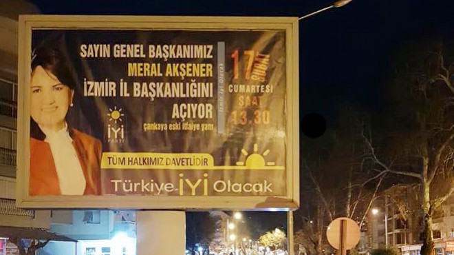 İYİ Parti’de Akşener’in kentteki programını anonslayan billboardlar ilk olarak Tire sokaklarında yerini aldı. Tire’den başlayan çalışma hafta içinde tüm kente yayılmış olacak.