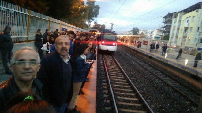 Buca İlçesi'ndeki Koşu Durağı'nda trenden indirilerek gelecek diğer treni beklemesi istenen yolcular ile durakta bekleyen yolculardan oluşan kalabalık işlerine ve okullarına geç kaldıkları için duruma tepki gösterdi.