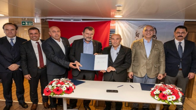 Belediye'den yapılan açıklamaya göre 427 personeli kapsayan TİS için Konak Vapur İskelesi'ndeki İhsan Alyanak Vapurunda imza töreni düzenlendi.