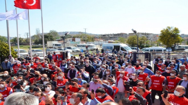 DİSK Ege Bölge Temsilcisi Memiş Sarı, şunları söyledi: Bu süreçten alnınızın akı ile çıktınız. Zorumuza giden, sınıfsal süreç için mücadele etmeyen sarı sendika için bir şeyler söylemek istiyorum; Bizi izlemeye devam edin. Ne zaman sosyal eksikleri tamamladık, koşa koşa belediyeye gittiler protokol yaptılar. Bundan 3 ay önce açıkladılar, protokol nerede Belediye-İş Sendikası? Biz fırsatçılık yapmayacağız. Biz üyelerimizden temsilcilerimizden aldığımız güçle TİS masasında noktayı koyacağız. Biz arka sokaklarda değil meydanlardayız. Kadınlara yapılan saldırılarda, toplumsal müdahalelerde, bu iktidarın mahvetmeye çalıştığı Türkiye Cumhuriyeti'nin yılmaz bekçileriyiz.”