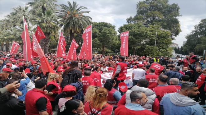 Öte yandan Kültürpark Basmane Kapısı önünde toplanan çok sayıda işçi, görüşmenin gerçekleşeceği İZENERJİ Genel Müdürlüğü önüne yürüdü. İşçiler yürüyüş esnasında “Sadaka değil toplu sözleşme”, “Birleşe birleşe kazanacağız” ve “Eşit işe eşit ücret” sloganları attı.
