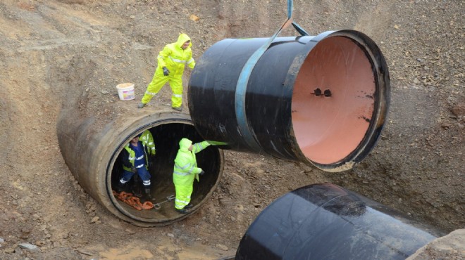 Görece Arıtma Tesisi Scada Merkezi’ndeki ekipler, dün gece debinin sıfıra düştüğünü fark eder etmez arızanın olduğu bölgeye gitti. Pompalar devre dışı bırakılarak hattaki su Tahtalı Barajı’na aktarıldı. Arızalı borunun olduğu nokta kazılarak, 2 metre 20 cm çapındaki betonarme borunun hasar gören bölümü yerinden çıkarıldı ve yeni parçaların bağlantı çalışmaları başladı.