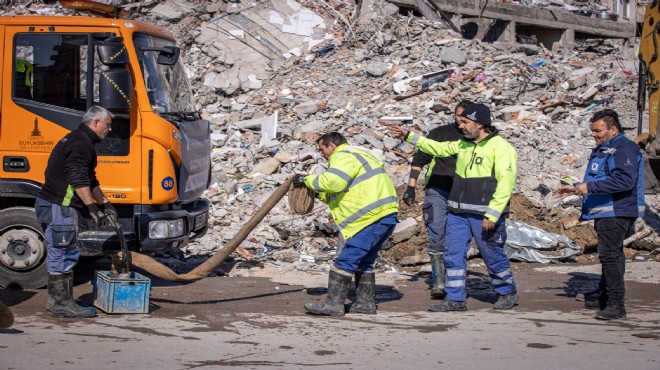 Türkiye’yi yasa boğan ve 6 Şubat depreminin ardından afet bölgesine destek veren kurumlardan İzmir Büyükşehir Belediyesi İZSU Genel Müdürlüğü, yıkımın en ağır yaşandığı Hatay’da çalışmalarına devam ediyor. İlk günlerde arama kurtarma çalışmalarına da katılan İZSU ekipleri, 203 personel, iş makinesi, su tankerleri, kanal temizleme araçları, vidanjörlerden oluşan 72 iş makinesiyle Hatay ve ilçelerinde görev yapıyor.