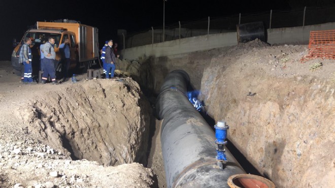 Menemen Koyundere Kavşağı ile Yahşelli’de dört ayrı noktada döşenen 2 metre 20 santim çapındaki yeni boruların ana isale hattına bağlantısı için 20 Ağustos’ta hattaki su kesilerek çalışmalara başlandı. Bağlantı çalışmalarının kısa sürede tamamlanması için İZSU çalışmalarına 37 kaynakçı, 50 işçi, 10 adet paletli kırıcı ve kazıcı iş makinesi, 4 adet 100 tonluk vinç ile gece boyunca da devam ediyor. Eski borularla yeni boruları birleştiren İZSU, kaynak çalışmalarının büyük ölçüde tamamlandığını belirtti. İZSU Genel Müdürlüğü yetkilileri, çelik boruların alttan desteklenmesi için zemine ayrıca beton dolgu yapılacağını ve ardından hafriyatın kapatılarak hatta su verileceğini de açıkladı.