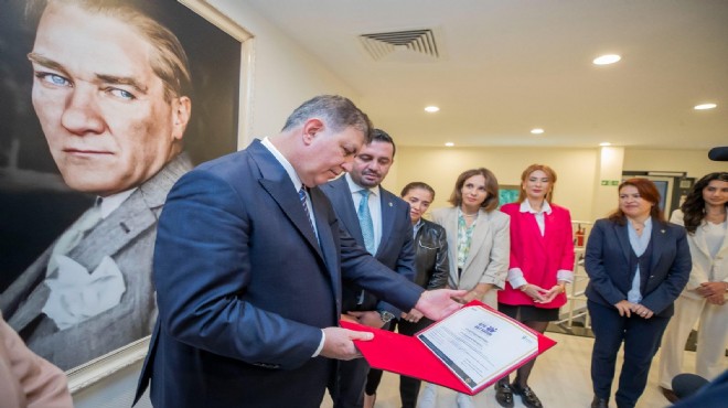 İş hayatında kadınlara eşit haklar ve fırsatlar sunan kurumların sahip olduğu İş’te Eşit Kadın Sertifikası, İzmir Büyükşehir Belediyesi iştiraki İZTEKNOLOJİ’ye verildi. Sürdürülebilirlik Akademisi ve İngiltere merkezli denetim şirketi Intertek iş birliği ile yapılan bağımsız bir denetim sonrası bu yaklaşımlarını belgelendiren kurumlar, İş’te Eşit Kadın Sertifikası almaya hak kazanıyor. İZTEKNOLOJİ ise bu önemli belgeyi almaya hak kazanan Türkiye’deki ilk belediye şirketi oldu. İzmir Büyükşehir Belediye Başkanı Dr. Cemil Tugay; İZTEKNOLOJİ Yönetim Kurulu Başkanı Andaç Pamuk, Genel Müdür Emrecan Durmaz, Genel Müdür Yardımcısı Gülşah Yaman Seyis ve şirketin çalışanları ile bir araya geldi. Başkan Tugay, bu önemli sertifikayı almaya hak kazanan şirketi tebrik etti.
