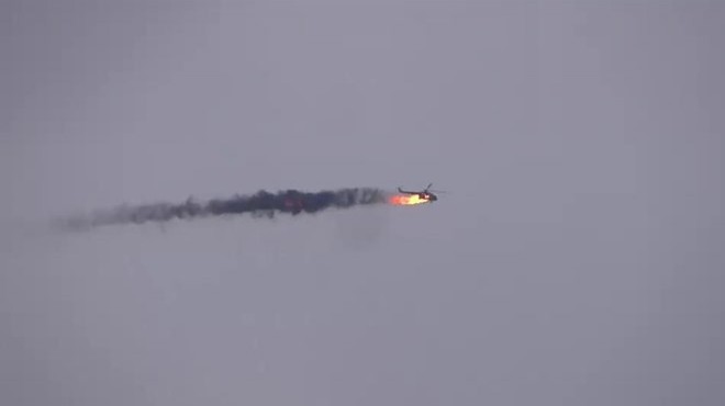 Suriye'de muhalifler, İdlib'in Serakib bölgesinde, Esad rejimine ait bir helikopteri vurduklarını duyurdu.