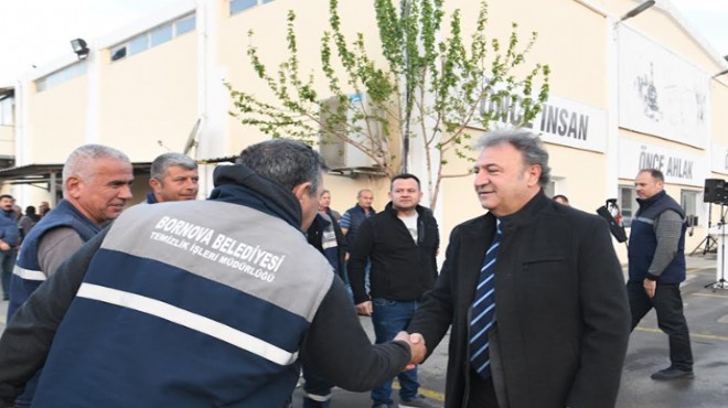 Bornova Belediye Başkanı Dr. Mustafa İduğ, bayramlaşma töreninde yaptığı konuşmada Bornova Belediyesi’nde yaptıkları yatırımlar ve aldıkları kararlar sayesinde çalışanların ücret, ikramiye ve toplu iş sözleşmesinden doğan alacaklarını günü gününe yapmanın mutluluğunu yaşadıklarını söyledi. Başkan İduğ, “Geldiğimiz günden beri toplu iş sözleşmelerinde Türkiye’nin en sağlıklı, en doğru kararlarını alan, çalışma arkadaşlarımızı enflasyon altında ezdirmeyen, refah seviyesini yukarda tutmaya çalışan bir anlayışla çalıştık” dedi.