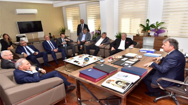 Ege Bölgesi Sanayi Odası Yönetim Kurulu Başkanı Ender Yorgancılar, EBSO Meclis Başkanı Salih Esen, EBSO Yönetim Kurulu Başkan Yardımcısı İbrahim Gökçüoğlu, ve yönetim kurulu üyeleri Hakan Ürün, Ali Arda Yüksel, Ateş Demirkalkan ve Aytekin Öztaş ile birlikte Bornova Belediye Başkanı Dr. Mustafa İduğ’u ziyaret etti. Yorgancılar, İduğ’un Bornova Belediye Başkanı seçilmesinden büyük bir mutluluk duyduğunu dile getirdi.
