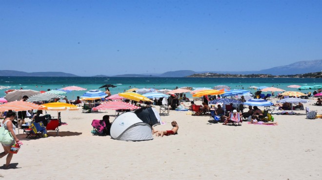 Turizmcilerin günler öncesinden rezervasyonları kabul etmeye başladığı Çeşme’de otellerdeki doluluk oranları yüzde 100'e yaklaşırken ilçenin nüfusu 1 milyonu aştı. Ilıca Plajı’nı dolduran binlerce kişi hem güneşlendi hem de denize girerek serinledi. Oldukça rüzgarlı bir havanın hakim olduğu Çeşme’de bazı tatilciler şemsiyelerine hakim olmakta zorlanıp zaman zaman zor anlar yaşadı.