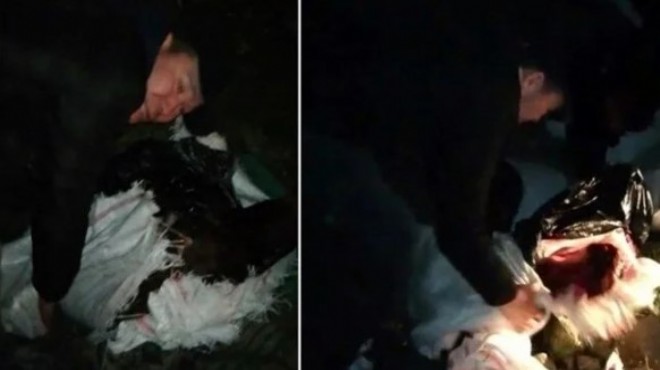 Baskında iki kişi gözaltına alınarak, polis merkezi amirliğine götürüldü. Etler ise, kazılan bir çukura gömüldü. Etlerin üzerine kireç döken ekipler, çukuru kapattı. (DHA)