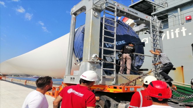Liman sahasında bulunan yüklerin kontrolü sırasında bir rüzgar türbini kanadının içinde 4 kişinin bulunduğu belirlendi.