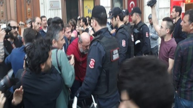 Gruptakiler ısrar edince polis müdahale etti. Eliaçık'ın aralarından bulunduğu 8 kişi gözaltına alındı.
