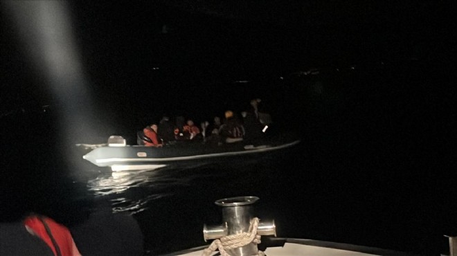 İzmir'in Çeşme ilçesi açıklarında da lastik botlar içerisinde bir grup düzensiz göçmen olduğu bilgisi üzerine bölgeye ekipler sevk edildi.