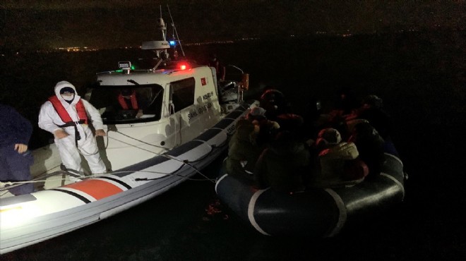 Dikili açıklarında görevli Sahil Güvenlik botu tarafından tespit edilen hareketli lastik botta da 21 düzensiz göçmen yakalandı.
