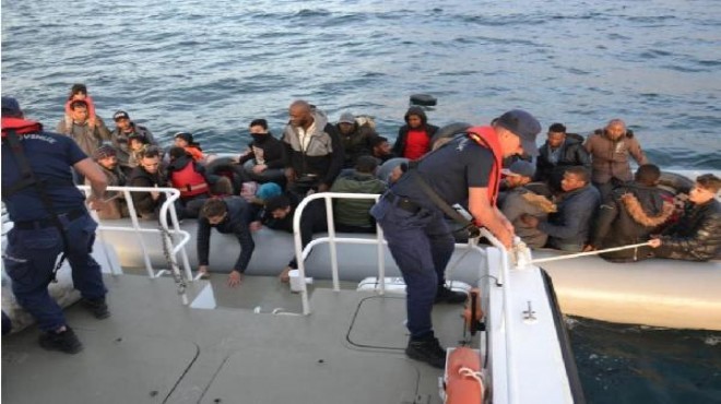 Dün saat 01.30 sıralarında ise, Çeşme ilçesi Alaçatı açıklarında görevli Sahil Güvenlik botu, hareket halinde bir lastik bot belirledi. Durdurulan bottaki 18'i Somali, 8'i Suriye, 4'ü Irak, 2'si Eritre ve 1'i Kongo uyruklu olmak üzere toplam 33 kaçak göçmen yakalandı. Kıyıya getirilen 18'i erkek, 6'sı kadın ve 9'u çocuk olan kaçaklar kimlik tespit işlemleri sonrası İl Göç İdaresi Müdürlüğü'ne teslim edildi. (DHA)