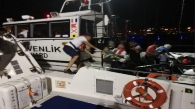 Sahil Güvenlik ekipleri, pazartesi günü saat 22.30 sıralarında, Çeşme Karaabdullah Burnu güneyinde bir grup kaçak göçmenin lastik botla geçiş yapacağı ihbarı üzerine harekete geçti. Ekiplerin durdurduğu lastik bottaki 6'sı Afganistan ve 3'ü Pakistan uyruklu toplam 9 kaçak göçmen yakalandı. 3'ü erkek, 2'si kadın ve 4'ü çocuk olan kaçak göçmenler kıyıya getirildi.