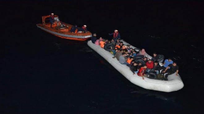 Sahil Güvenlik mobil radarı, cumartesi günü saat 21.40'ta, Menderes ilçesi Özdere açıklarındaki bir lastik botta bir grup göçmen tespit etti. Görevlendirilen Sahil Güvenlik botu ekibi tarafından durdurulan lastik botta 43'ü Suriye ve 6'sı Filistin uyruklu olmak üzere toplam 49 kaçak yakalandı. 22'si erkek, 9'u kadın ve 18'i çocuk olan grup, kıyıya getirildi.