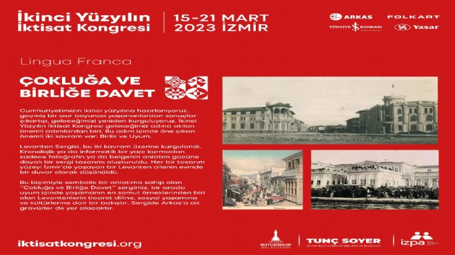 “Değişime Davet” başlığıyla düzenlenen “İzmir İktisat Kongresi 1923” sergisi, Ahmed Adnan Saygun Sanat Merkezi’nde (AASSM) sanatseverlerle buluşacak. Sergide 1923’te düzenlenen ilk İzmir İktisat Kongresi ve kongreye giden yoldaki sürece dair birçok fotoğraf bulunuyor. “Çokluğa ve Birliğe Davet” başlığıyla düzenlenen ve AASSM’de sergilenecek “Lingua Franca”nın her bir tasarım yüzeyi, İzmir’de yaşayan bir Levanten ailenin evindeki bir duvar olarak düşünüldü. Bu biçimiyle sembolik bir anlatıma sahip olan sergi, bir arada uyum içinde yaşamanın en somut örneklerinden biri olan, ülkesi olmayan “ulus” Levantenlerin ticaret hayatına, sosyal yaşamına ve kültürlerine dair bir bakış sunuyor.