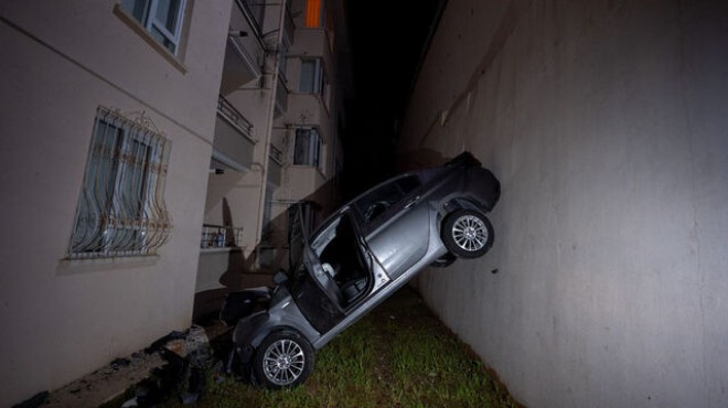 Sürücüsünün otoparkta direksiyon kontrolünü yitirdiği otomobil, demir korkulukları aşarak, bir binanın 3'üncü katındaki daireye çarpıp, apartman boşluğuna düştü. İhbar üzerine kaza yerine sağlık, polis ve itfaiye ekibi sevk edildi.