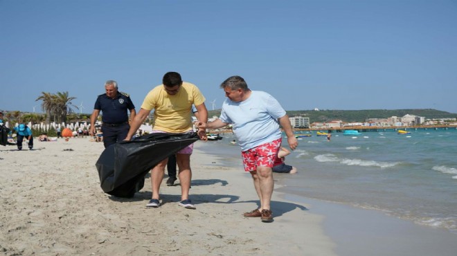 Çeşme Belediyesi tarafından Ilıca Plajı'nda temizlik çalışması başlatıldı. 'Temiz Kıyı, Temiz Deniz' adı altındaki temizlik çalışmasına belediye personeli ve gönüllü çevre dostlarının yanı sıra Çeşme Belediye Başkanı Ekrem Oran katıldı. Plajdan izmarit, meşrubat şişesi, çeşitli ambalajlara kadar çok sayıda katı atık toplandı. Toplanan onlarca torba atık, çöp depolama alanına gönderildi.