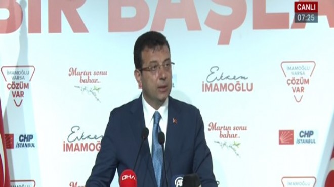 Millet İttifakı'nın İstanbul Büyükşehir Belediyesi başkan adayı Ekrem İmamoğlu seçim sonuçlarına ilişkin yeni bir açıklama yaptı. İmamoğlu hem kendi sonuçlarına hem de YSK'nın aktardığı sonuçlara göre İstanbul'da seçimi kazandığını söyledi.