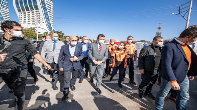 İzmir Büyükşehir Belediye Başkanı Tunç Soyer ve İstanbul Büyükşehir Belediye Başkanı Ekrem İmamoğlu, Aşık Veysel Rekreasyon Alanı’ndaki çadır ziyaretinin ardından ortak basın açıklaması yaptı. Başkan Tunç Soyer, depremin hemen ardından İzmir’e ekip gönderen Başkan Ekrem İmamoğlu ile İstanbul Büyükşehir Belediyesi çalışanlarına teşekkür etti. Soyer, "Her birinize ayrı ayrı minnettarız. İyi ki varsınız ve bu destek elini uzattınız. Yaralarımızı hafifletmek için omuz omuza çalıştık. Bundan sonra yaşadığımız şehirlerin daha güvenli hale gelmesi, insanların yaşadıkları evlere, konutlara güvenebilmesi için birlikte çalışmaya devam edeceğiz. Engelleri dayanışmayla ortadan kaldıracağız. Dayanışmayı sürdüreceğiz” dedi.