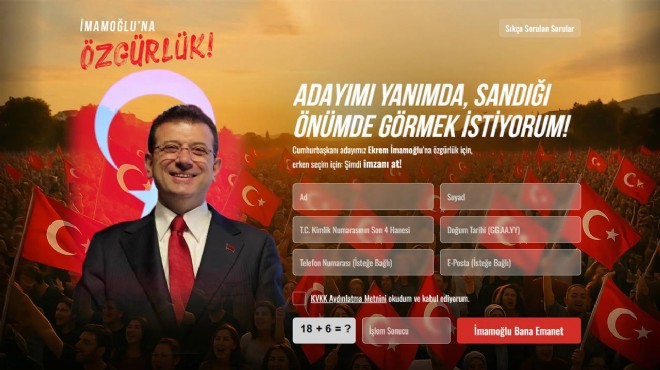 CHP, tutuklu Cumhurbaşkanı adayı Ekrem İmamoğlu’na destek ve erken seçim talebi için dijital imza kampanyası başlattı. Kampanya, "Benimimzam.net" adresi üzerinden yayına alındı.