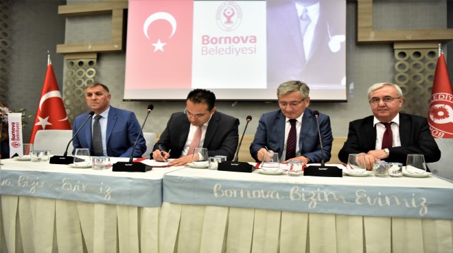 Bornova Belediyesi/nin 180 işçisine yönelik yüzde 14’lük iyileştirmeleri kapsayan sözleşmenin imza töreni Bornova Kültür Merkezi’n de yapıldı. Bornova Belediyesi ile Belediye- İş Sendikası İzmir 6.Nolu Şube arasında gerçekleşen Toplu İş Sözleşmesi imzalarını Bornova Belediye Başkanı Olgun Atila, Belediye- İş Sendikası Genel Başkanı Nihat Yurdakul, Belediye-İş TİS Örgütlenme Sekreteri Erdoğan Kefeli ve 6 Nolu Şube Başkanı Veysel Aygiray attı.