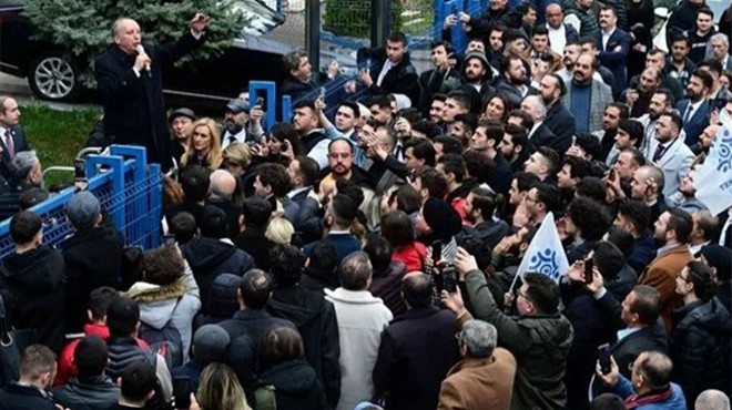 Yüksek Seçim Kurulu'na (YSK) gideceğini hatırlatan İnce, "Yarın YSK'ya gidip adaylık için dilekçemi vereceğim. Yarın son gün. Ama çarşamba bir iş başlıyor; 100 bin imza. Çarşambadan pazartesiye kadar. Biz ne yapacağız? Çarşamba günü, 1 günde işi bitireceğiz. Sizden ne istiyorum? Çarşamba günü kardeşiniz, anneniz, babanız, sevgiliniz, arkadaşınız, babaanneniz, anneanneniz, dedeniz, komşunuz kim varsa ilçe seçim kuruluna gidip, imza verdiriyorsunuz. Hadi göreyim sizi, çarşamba gününden itibaren ilçe seçim kurulu başkanlıkları önünde kuyruk oluşturacaksınız. Hadi göreyim sizi. Fransa'da Macron nasıl her iki bloku yırtıp attıysa; biz de Türkiye'de bir devrim yapacağız. Ne Cumhur ne Millet; tek yol Memleket" diye konuştu. ?İnce ardından gençlerle birlikte İzmir Marşı'nı söyledi.