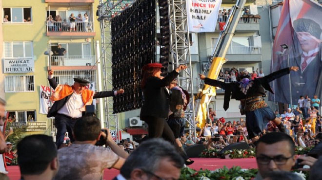 CHP Cumhurbaşkanı adayı Muharrem İnce, Ankara programının ardından havayoluyla geldiği Aydın’ın Efeler ilçesi Atatürk Kent Meydanı’nda vatandaşa hitap etti. CHP Genel Başkan Yardımcısı ve Aydın Milletvekili Bülent Tezcan, Aydın Büyükşehir Belediye Başkanı Özlem Çerçioğlu ile CHP Aydın milletvekillerinin eşlik ettiği İnce miting konuşmasının ardından zeybek oynadı. Kendisine Eee poşusu ve 8 köşe kasket hediye edilen İnce, Aydın mitingini platformda Başkan Çerçioğlu ve efelerle birlikte zeybek oynayarak tamamladı.