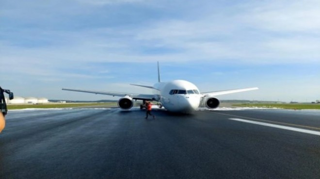 İstanbul Havalimanı'ndaki uçağın indiği 16R numaralı pist de uçuşlara kapatıldı.