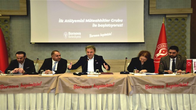 Bornova Belediyesi Kültür Merkezi’nde düzenlenen toplantıda Bornova Belediye Başkanı İduğ, Bornova Belediyesi Meclis Üyesi Cihan Dağlıer, Bornova Belediyesi Başkan Yardımcısı Nurhan Pişkin, İzmir Müteahhitler Federasyonu Başkanı Ziya Dağlıer ve Folkart Yönetim Kurulu Başkanı Mesut Sancak’ın konuşmacı olduğu atölye çalışmasında müteahhitlerle biraraya geldi.