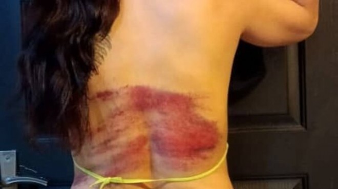 Sırt bölgesine 70'den fazla kırbaç darbesi alan kadının sırt bölgesinde morarmalar oluştu. Bu ağır cezaya maruz kalan kadın, kendi vatanında güvende hissetmediğini belirtti.