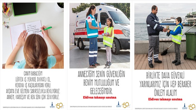 İzmir Büyükşehir Belediyesi, iş kazalarını azaltmak, iş ve işçi sağlığını korumak amacıyla “Geleceğimi şansa bırakma” adlı farkındalık çalışması başlattı. Belediye’nin farklı birimlerinde görev alan personelin iş güvenliği kurallarına uymalarını sağlamak amacıyla hazırlanan uyarı afişlerinde, işçilerin kendi çocukları da yer aldı. Anne ve babalarının işyerine gelerek burada onlarla fotoğraf çektiren çocukların anne ve babalarına söylediği sözler ise afişlerin sloganı oldu.