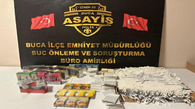 Buca'da kaçak sigara ticareti yaptıkları öne sürülen 2 şüpheli gözaltına alındı.