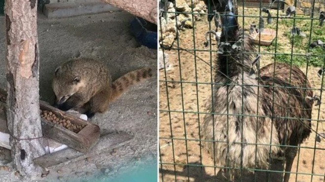İş yerinde yapılan aramada 3 adet alpaka, 2 adet rakun, 4 adet coati, 1 adet emo devekuşu ve 2 adet sincap türü canlıya el konuldu.