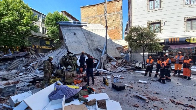 Öte yandan, çöken bina park halindeki araçların üzerine yıkılırken, yoldan geçen belediye otobüsünde de hasar oluştu.
