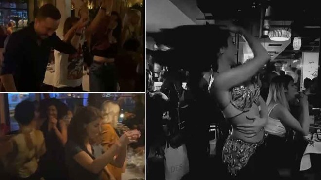 Dansözün de sahne aldığı gecede buradakiler, göbek atıp halay çekti. Maske takan tek kişinin olmadığı gruptakiler sosyal mesafeyi de hiçe saydı.